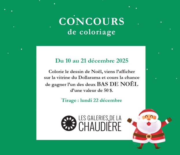 Du 10 au 21 décembre 2025 Colorie le dessin de Noël, viens l’afficher sur la vitrine du Dollarama et cours […]